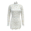 VC White Turtleneck Lace Floral Mini Dress For Women Long Sleeves Slim Bodycon Elegant Evening Party Cocktail Wear