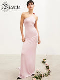 VC Women'S Pink Dress Elegant And Pretty Maxi Gown 3D Flower Design Diagonal Collar Sleeveless Formal Party Vestidos