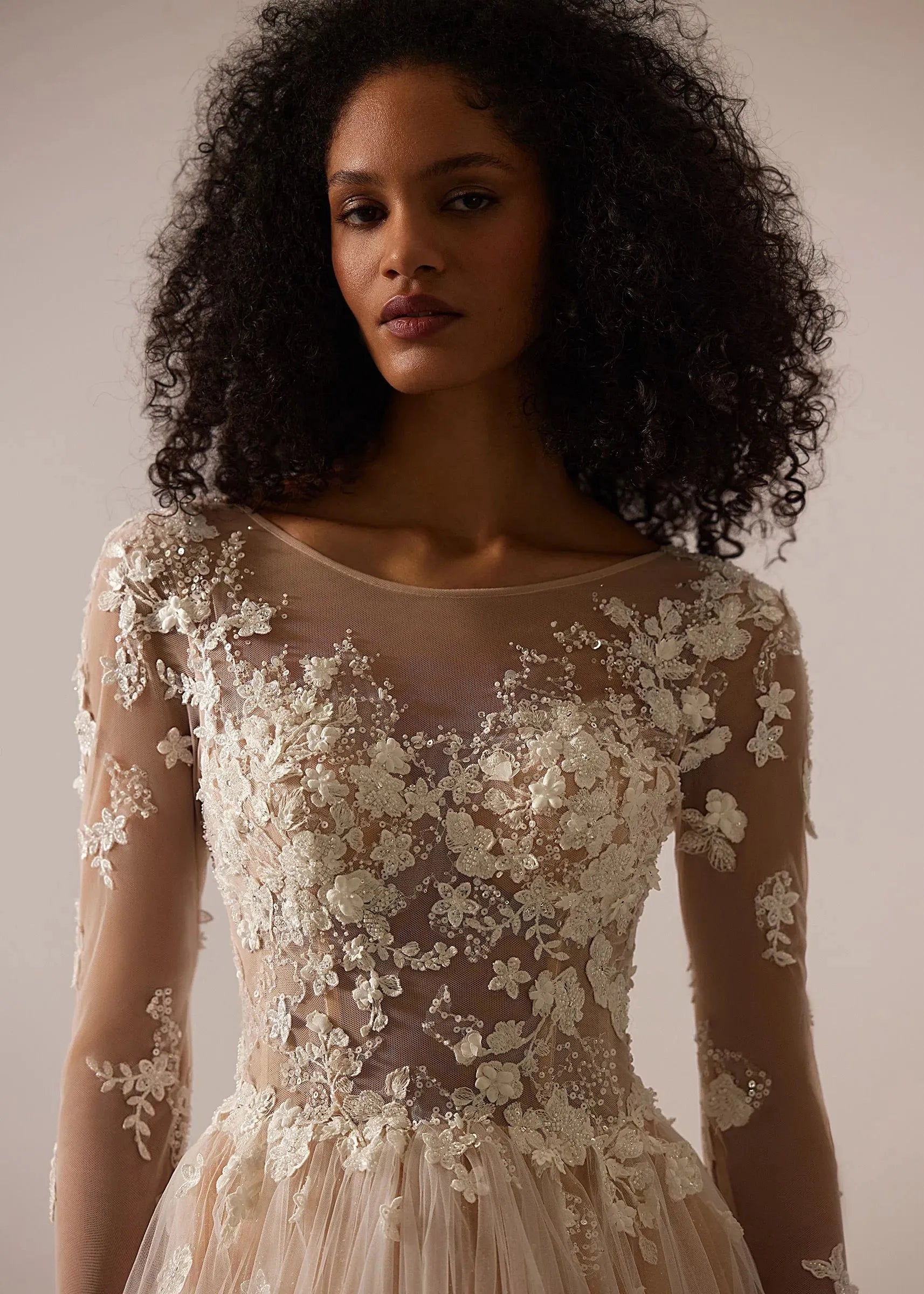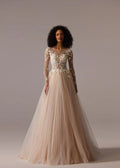 Robe de mariée manches longues Tulle a-ligne robes de mariée robes de novia Applique