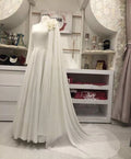 Robe de mariée musulmane blanche à manches longues, coupe trapèze, en mousseline de soie, élégante, style arabe de Dubaï