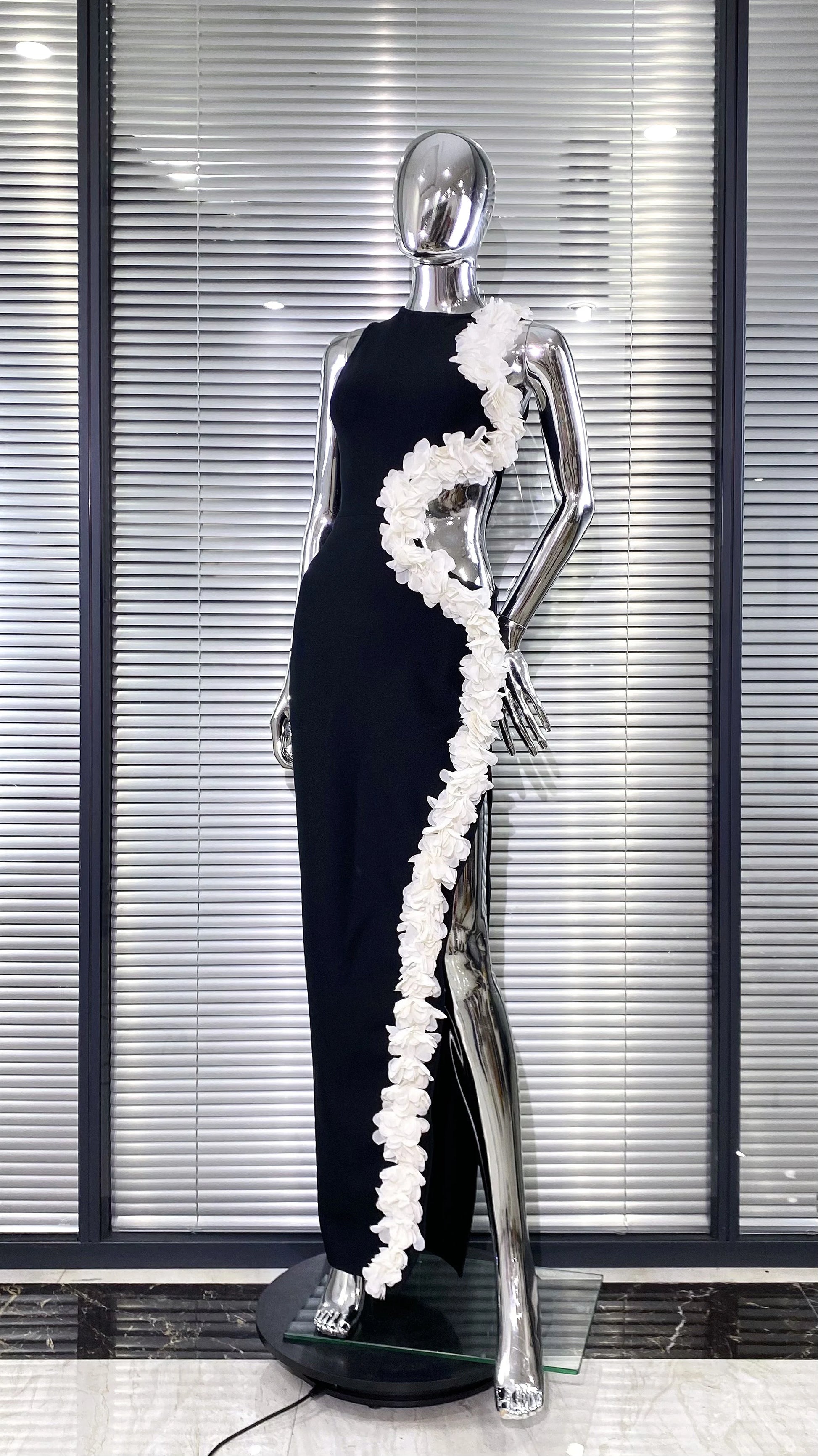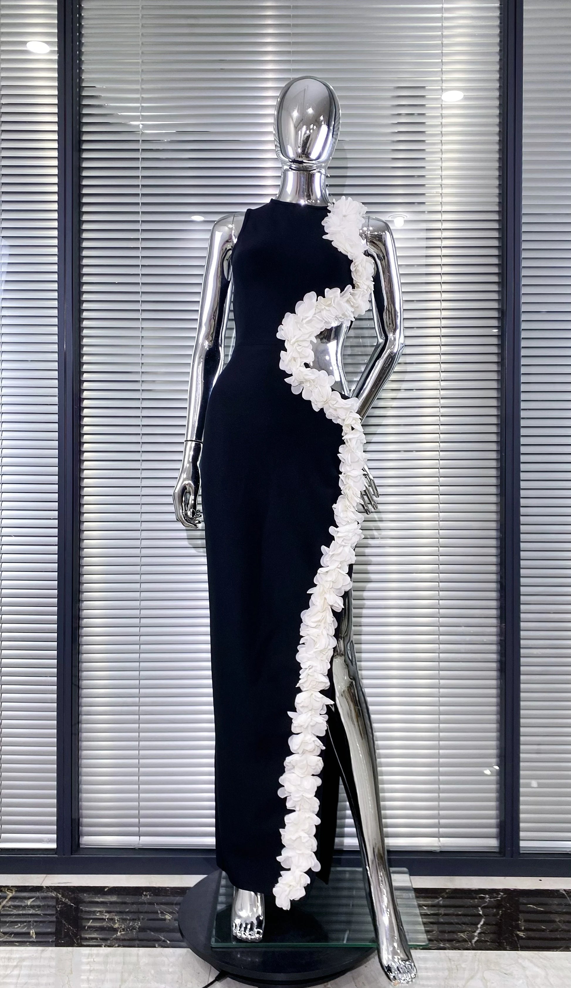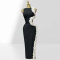White Petal Edge Hollow Out Sleeveless Sheath Black Bandage Ankle Lengh Dress Woman Party Vestido Celebrity Cocktail Outfit