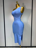 Women Bodycon Bandage Dress One Shoulder Sleeveless Sexy Backless Dress Cocktail Evening Party Vestidos Luxury Birthday Dresses