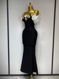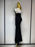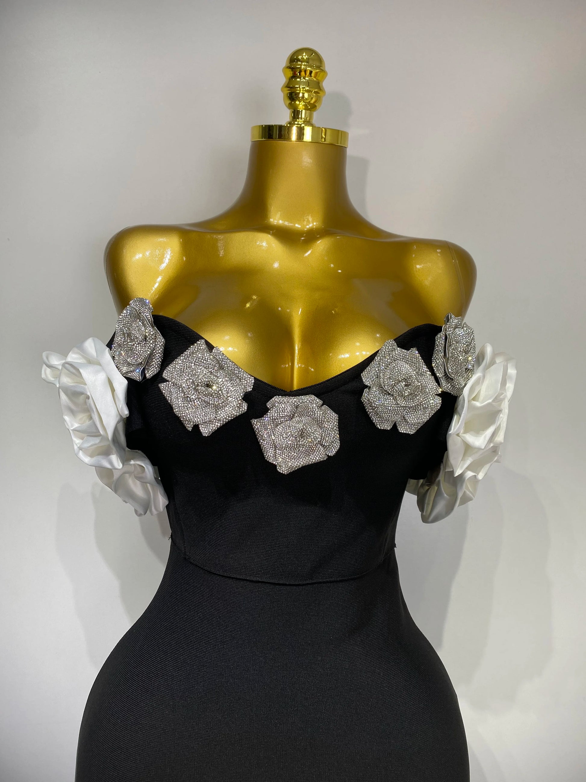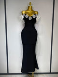 Women Luxury Rhinestone Celebrity Sexy Off Shoulder Flower Maxi Long Bodycon Bandage Dress Elegant Evening Club Party Outfit