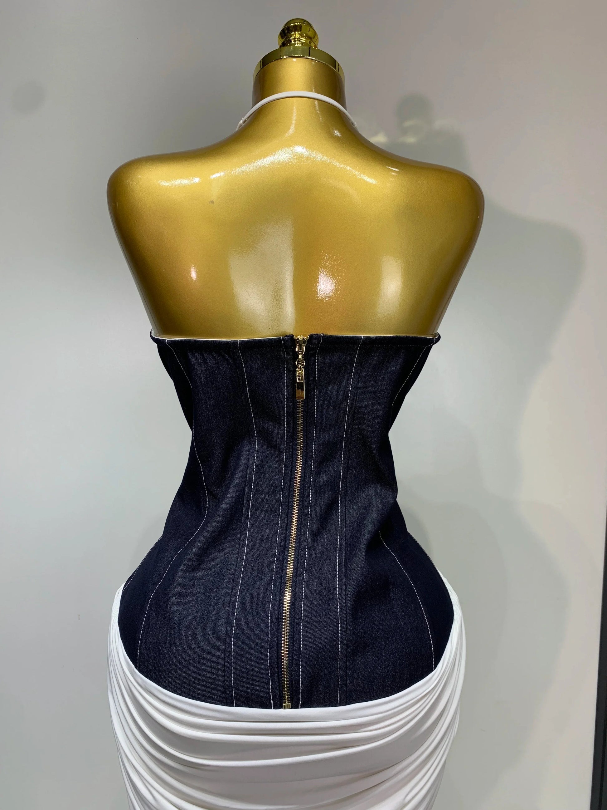 Regardless of the color you select for your dress, the white, black, or ivory lace accents will remain consistent. This applies to designs where the bodice and skirt are in different colors, maintaining a harmonious and sophisticated aesthetic.