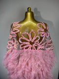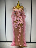 Women Sexy Mesh See Through Sequins Pink Maxi Long Dress Sparkly Sequin Evening Party Costume Stage Performance Birthday Dress