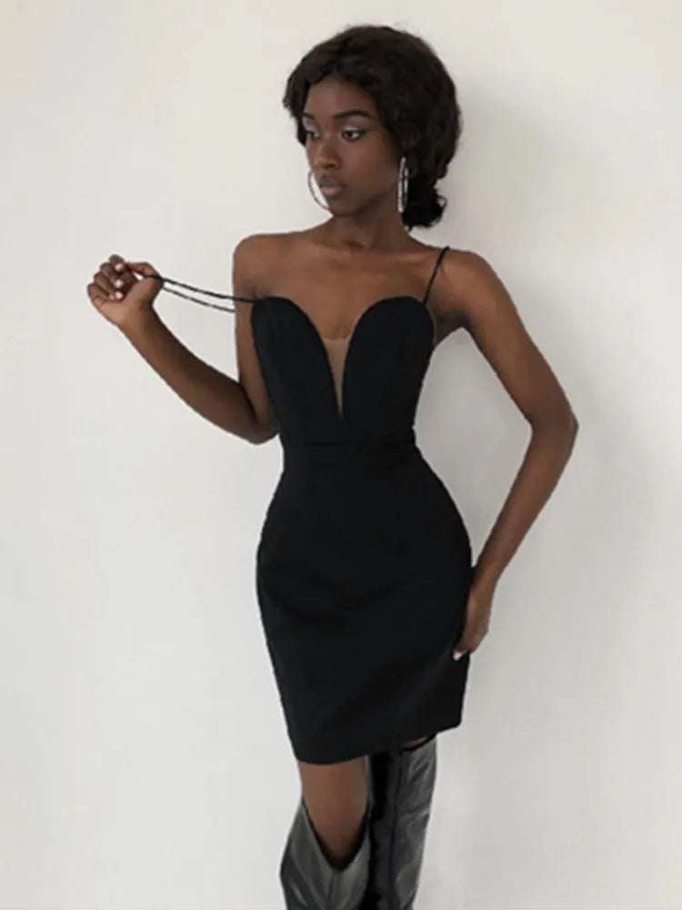 Black White Color Women Sexy Strap V-Neck Bodycon Mini Dress Sleeveless Bandage Nightclub Celebrate Party Dress
