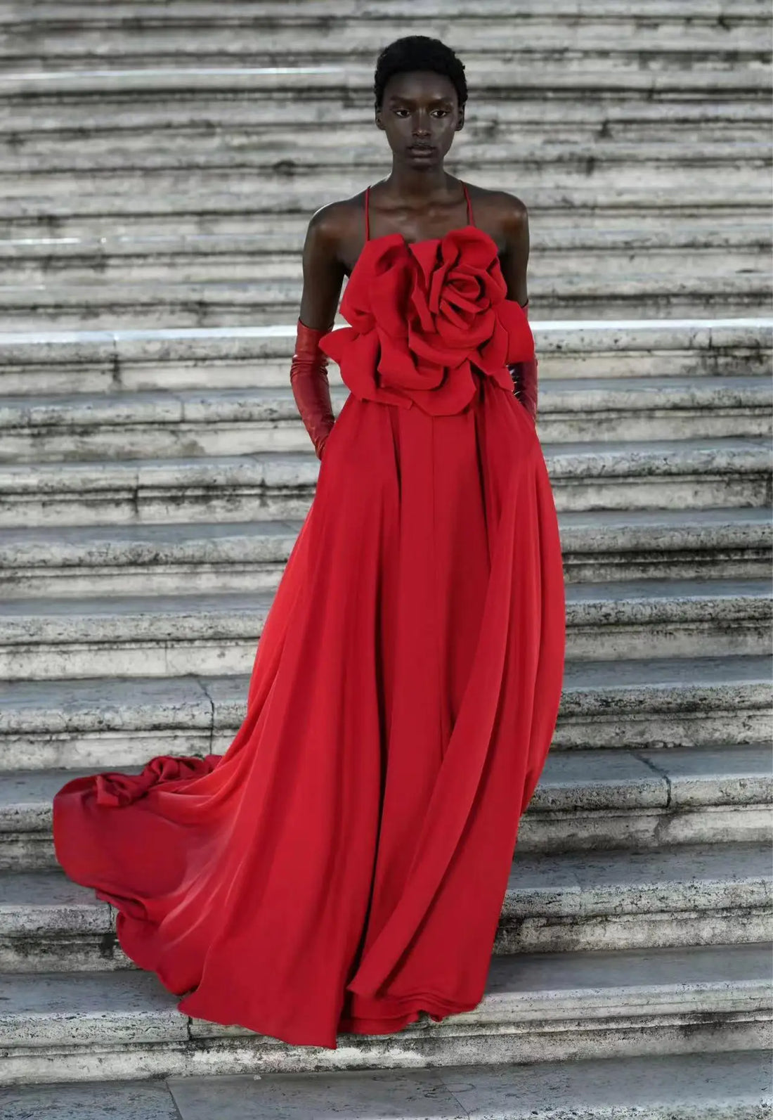 Red Color Women Sexy Strap Sleeveless Florals Loose Floor-Length Dress Celebrate Evening Party Wedding Mermaid Dress