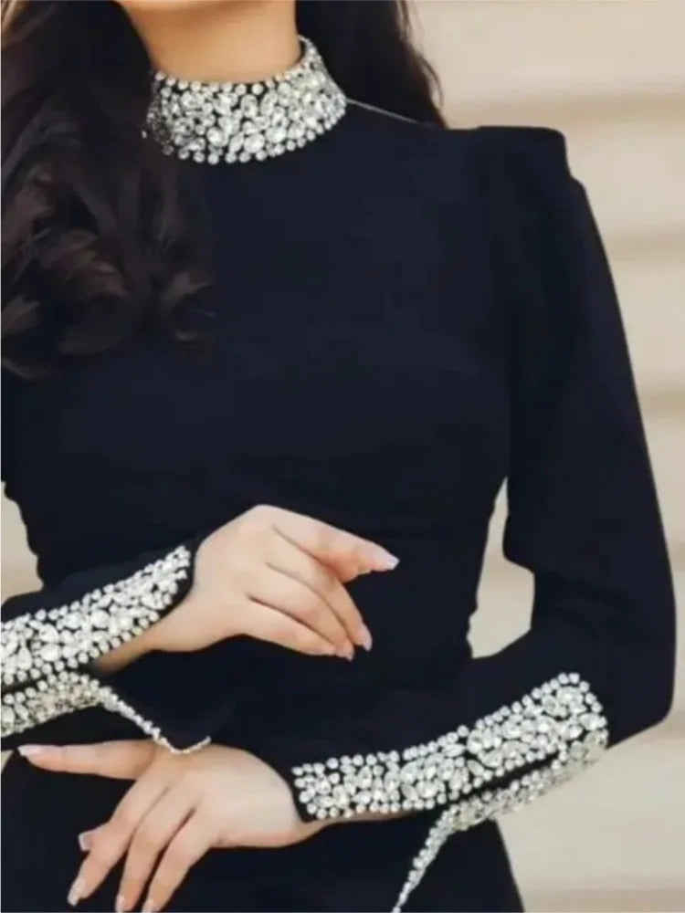 2025 New Black Red Women Long Sleeve Diamond Florals 2 Pieces Bodycon Long Bandage Dress Celebrate Evening Party Christmas Dress