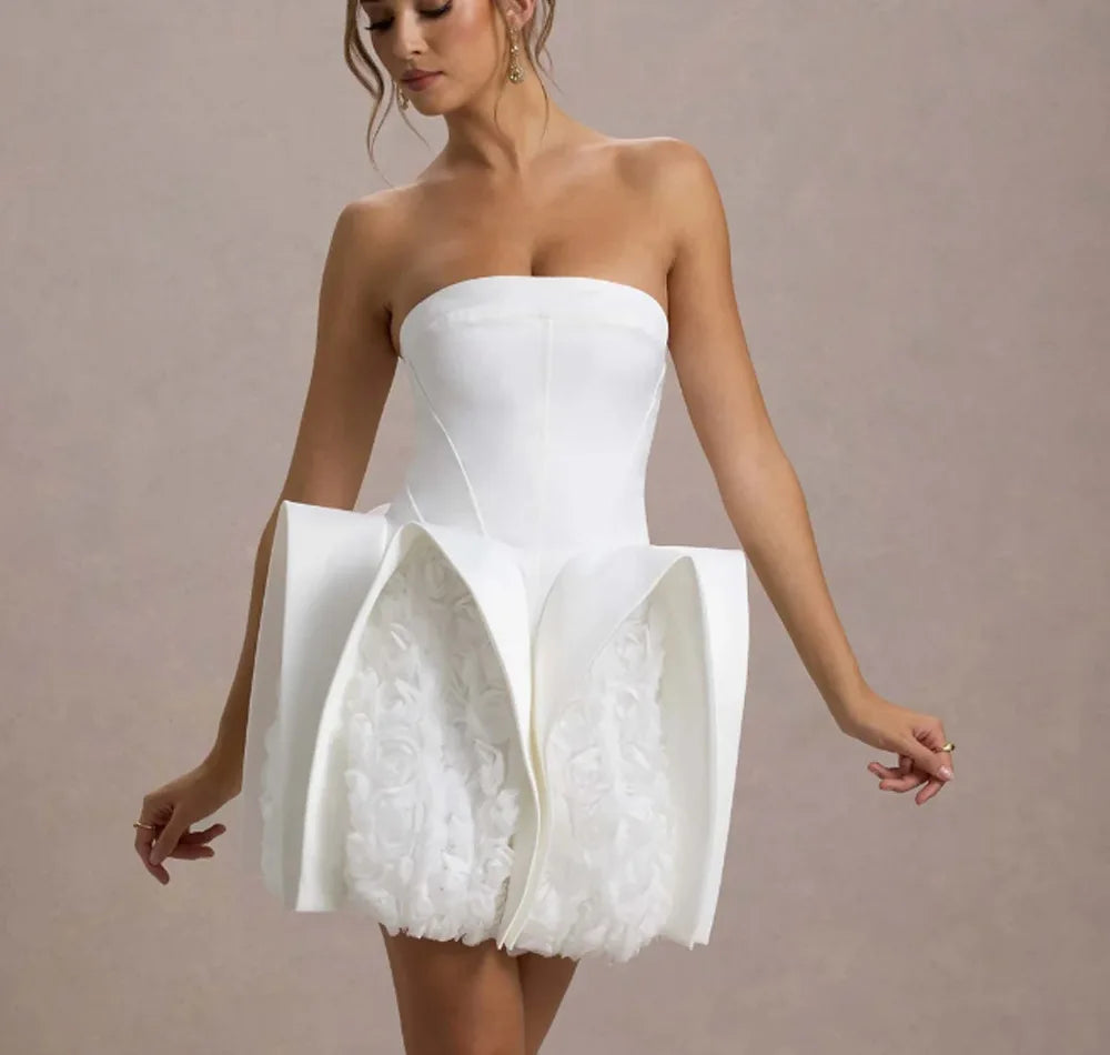 2025 New White Color Women Sexy Strapless Florals Bodycon Mini Dress Cute Girls' Birthday Party Celebrate Wedding Outfit