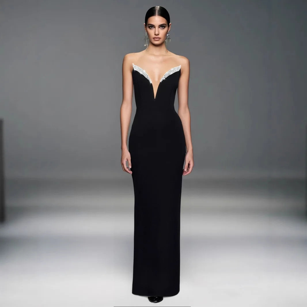 Shinning Sequins Women Sexy Strapless Floor-length Dress Celebrate Evening Party Prom Fashion Outfit 2025 New Arrival