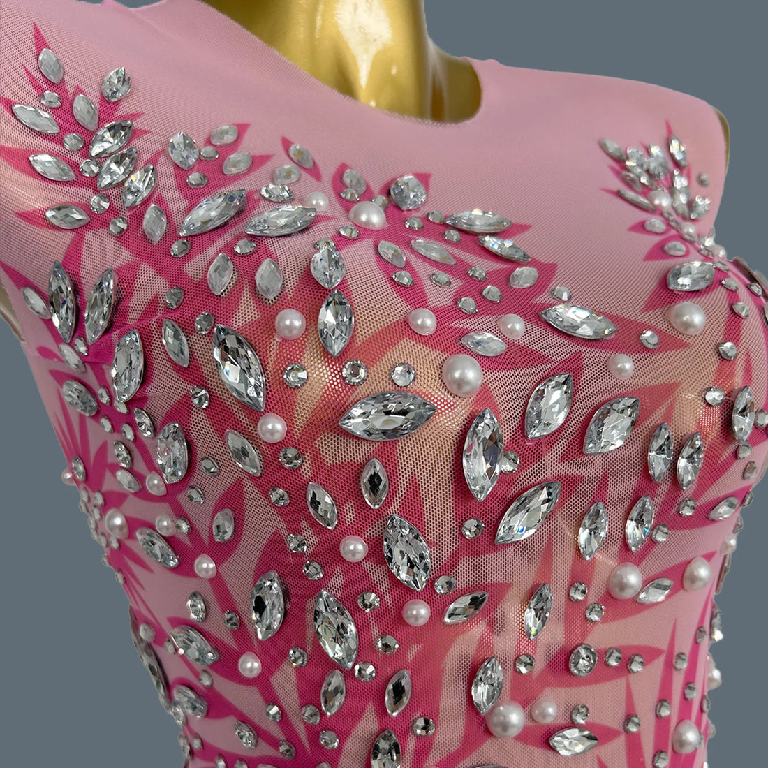 Women Luxury Sheer Mesh Pink Prom Dress Glitter Diamonds Long Evening Dress Birthday Party High-end Gown Banquet Robe Fenzhu