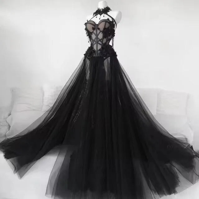 אמנדה יוקרה שחור vestidos de noche שמלות נשף טול צווארון טול אלגנטיות ללא שרוולים ערב רשמי מפוצל באורך צד
