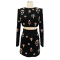 2024 New Elegant Women's Light Luxury Nail Bead Short Skirt Set O-neck Long Sleeve Ultra Short Top+Mini Skirt Two piece Set
