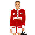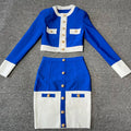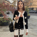 2024 New Patchwork Black White O Neck Long Sleeves With Pockets Buttons Two Pieces Bandage Skirt Women Set