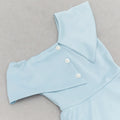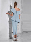 2024 Sexy Women Sky Blue Dress Off Shoulder Slant Neck Lotus Leaf Sleeve Button Design Bodycon Midi Dress Evening Party Vestidos