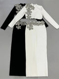 2024 Sexy Women's Bandage Skirt Set Stand up Collar Long Sleeve Nail Bead Water Diamond Short Top+Long Dress Two Piece Set