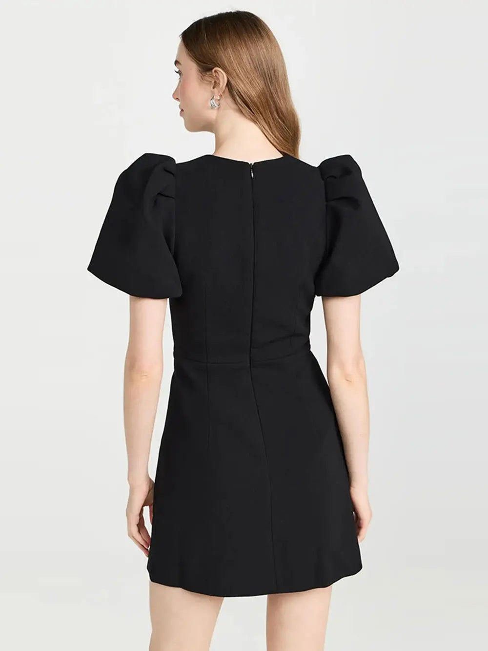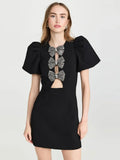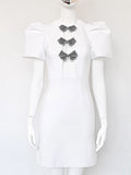 2024 Sexy Women's Water Diamond Butterfly Knot Design Bandage Dress O-Neck Bubble Short Sleeve Hollow Bodycon Mini Dress Vestido