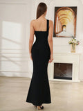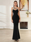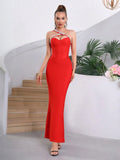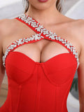 2024 Sexy Women's Wear Beaded Water Diamond Bandage Dress One Shoulder Sleeveless Bodycon Off the Back Long Dress Party Vestido