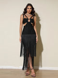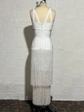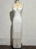2024 Summer Sexy Tassel Bandage Dresses Women's Spaghetti Sleeveless Hollow Bodycon Long Dress Celebrity Evening Party Vesidos