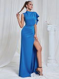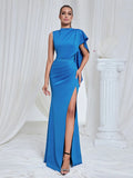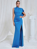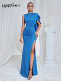 2025 Elegant Women Maxi Dress O-neck Single Shoulder Sleeveless Bodycon Draped Split Body Long Dress Evening Club Party Vestidos