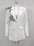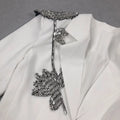 2025 Elegant Women Office OL Blazer Polo Collar Long Sleeve Slim Fit Single breasted Stereoscopic Water Diamond Flower Suit Coat