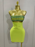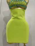 2025 Luxury Sexy Strapless Sparkly Diamond Cut Out Bodycon Bandage Dress Women Celebrity Elegant Evening Party Birthday Outfit