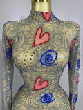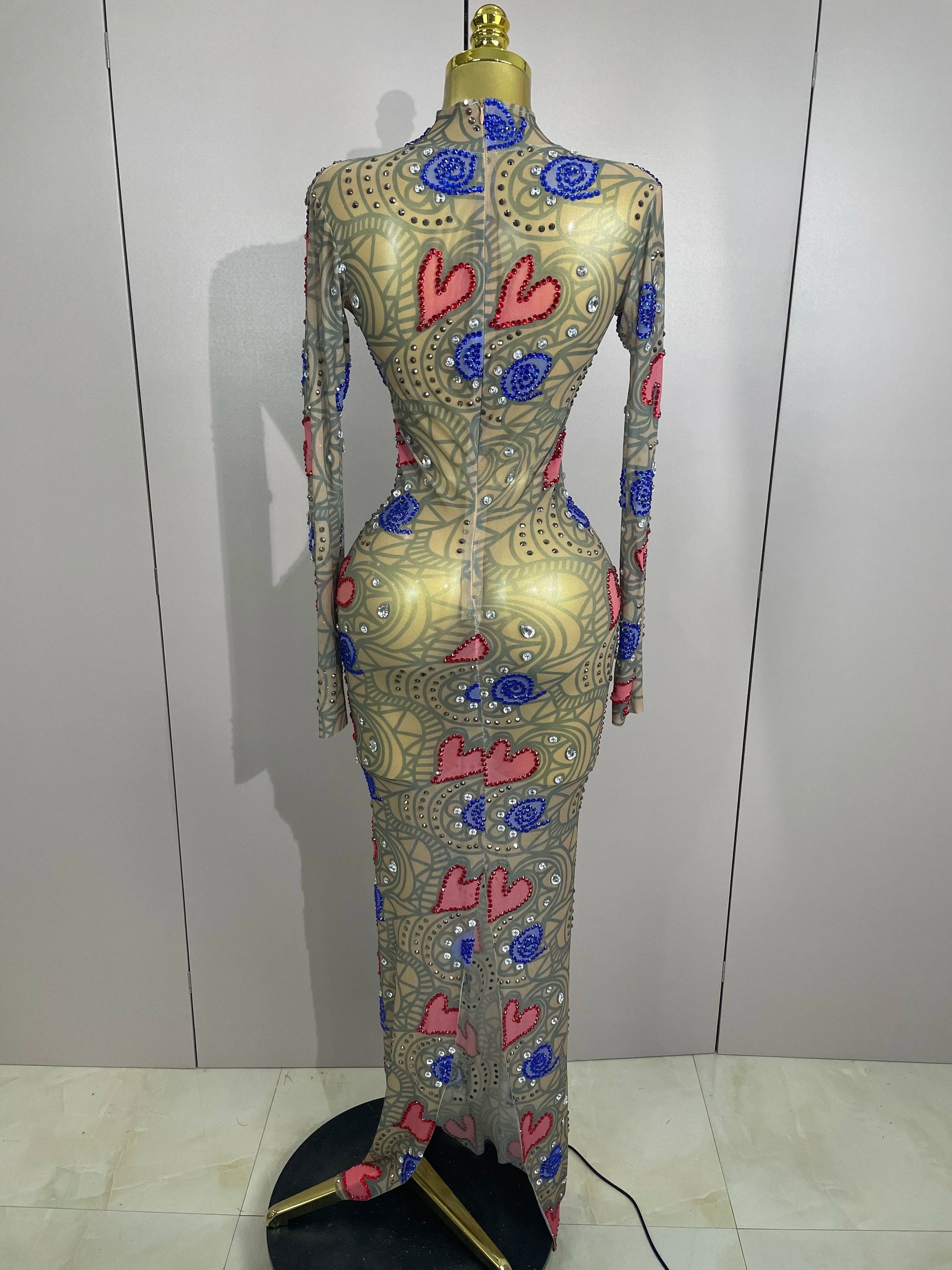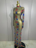 2025 New Sparkly Diamond High Neck Sexy Mesh Wrap Hip Long Dress Host Annual Meeting Party Nightclub Bar Performance Costume