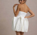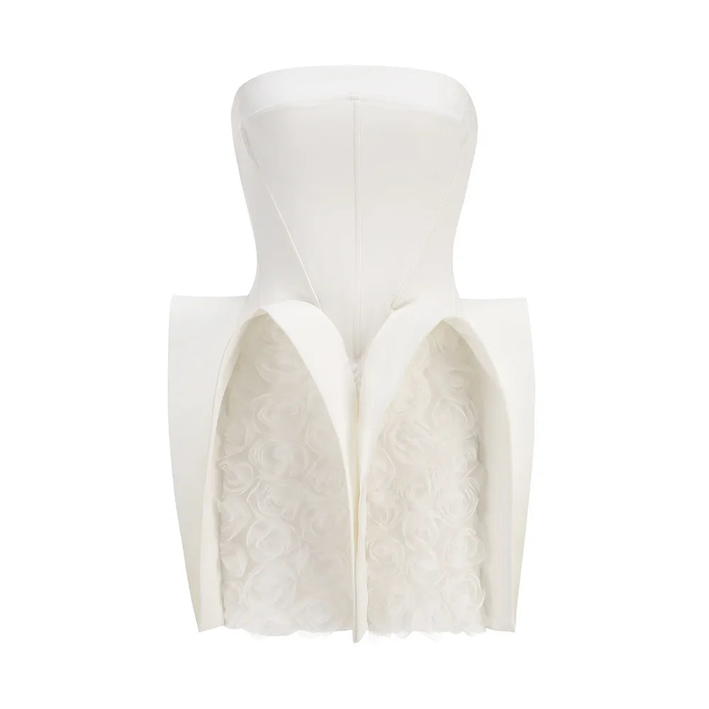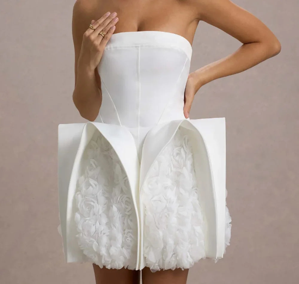 2025 New White Color Women Sexy Strapless Florals Bodycon Mini Dress Cute Girls' Birthday Party Celebrate Wedding Outfit