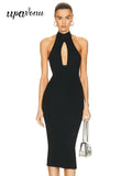 2025 Sexy Women Hanging Neck Sleeveless Bandage Dress Bodycon Off Back Knee Black Dress Celebrity Cocktail Evening Party Vestido