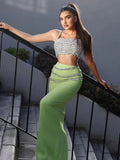 2025 Sexy Women Light Luxury Nail Bead Long Skirt Set Spaghetti Strap Sleeveless Ultra Short Vest+High Waist Skirt Two-Piece Set