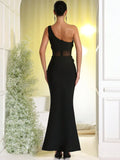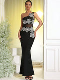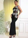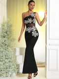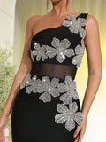 2025 Sexy Women's Light Luxury Flower Set Diamond Design Bandage Dress One Shoulder Sleeveless Bodycon Patchwork Long Dresses