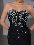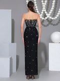 2025 Sexy Women's Nail Bead Design Bandage Dress Strapless Sleeveless Bodycon Backless Long Dress Cocktail Dinner Dress Vestitos