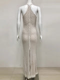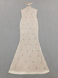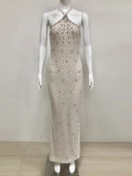 2025 Spring Sexy Women's Light Luxury Nail Bead Design Maxi Dress O-Neck Sleeveless Bodycon Tail Long Dress Club Party Vestidos