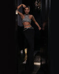 2025 Stylish Expose Wasit Woman Set Sparkling Diamonds Short Tank Top And Bandage Skirt 2 Pieces Birthday Party Vestido