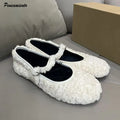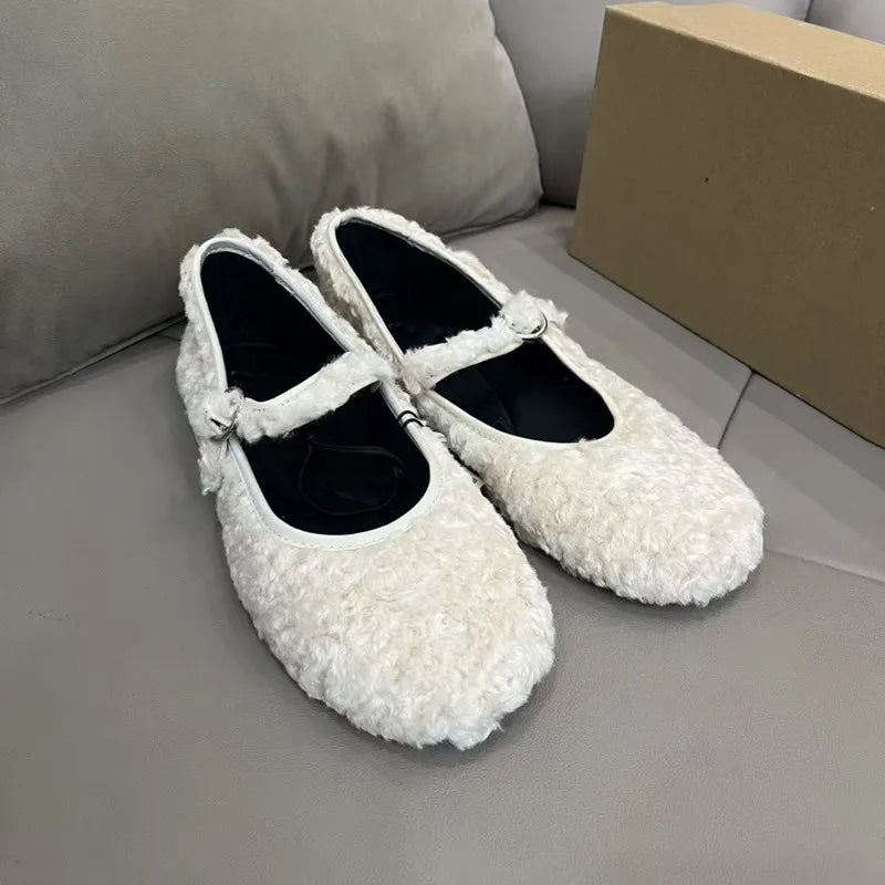 2025 Winter Warm Furry Wool Women Ballet Flats Comfortable Soft Soles Mary Janes Walking Loafers Casual Girls Dance Lazy Shoes