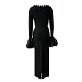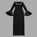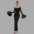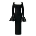 Black Color Women Long Sleeve Sexy Sqaure Collar Shinning Crystal Bodycon Long Bandage Dress Celebrate Evening Party Outfit