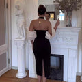 Black Color Women Sexy Off the Shoulder Florals Bodycon Mid-Calf Dress Birthday Party Celebrate Homecoming Dress Wholesale