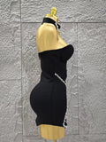Black Color Women Sexy Strapless Shinning Crystal Bodycon Mini Bandage Dress Necklace Fashion Celebrate Nightclub Party Wear