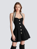 Dazzling Diamonds Halter Sleeveless Waist in Black Mini Evening Dress Woman Birthday Party Dress Celebrity Evening Party Outfit