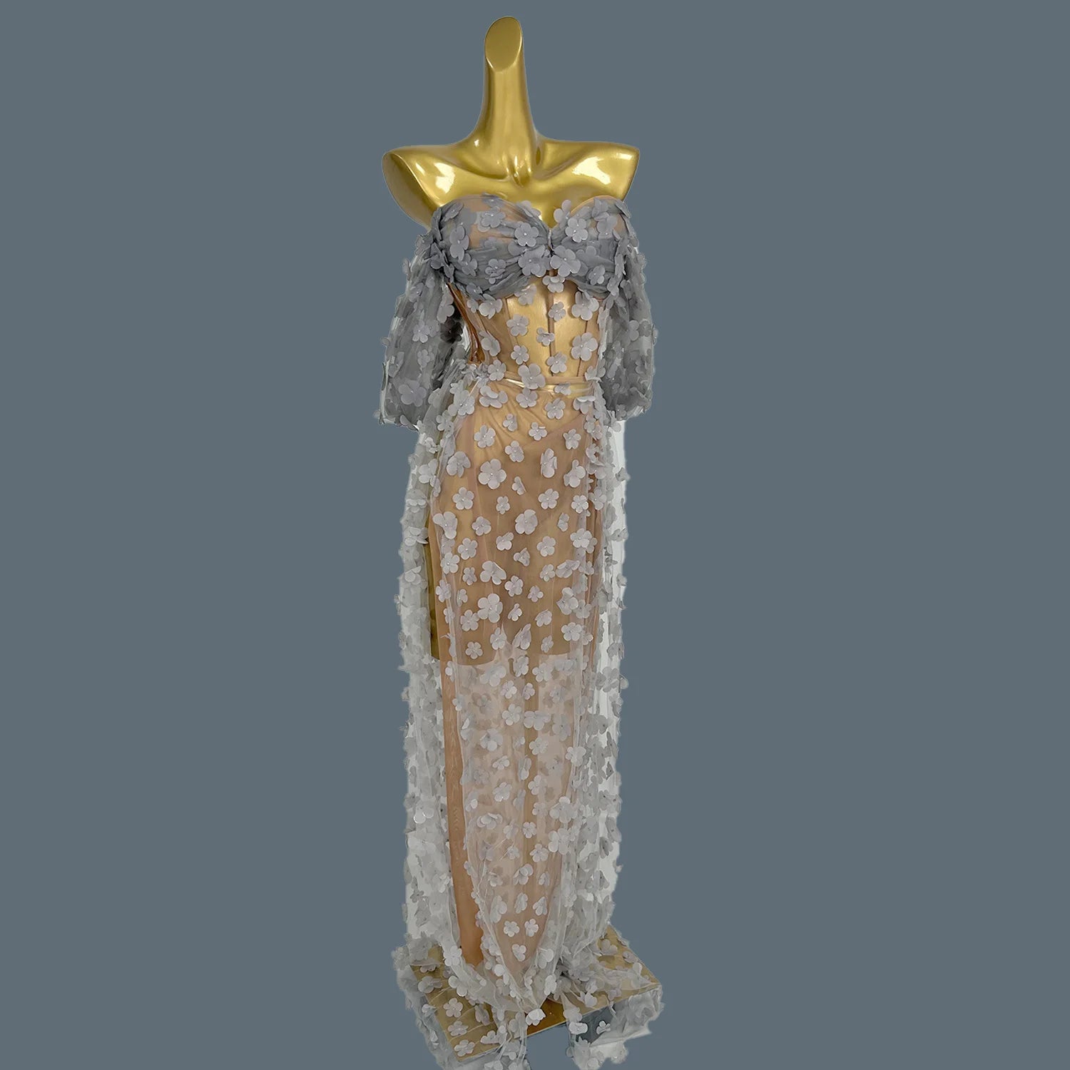 Elegant Fancy Evening Dress Woman See Through Maxi Dress For Young Lday Birthday Graduation Prom Club Night Party Goddess Huahua