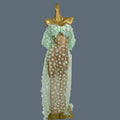 This bespoke, handmade dress is crafted with exceptional attention to detail using premium materials. Each stitch reflects the artistry and dedication of our skilled artisans, ensuring a timeless and elegant look. Designed to complement every season—Spring, Summer, Fall, and Winter—this dress is as versatile as it is beautiful.