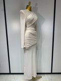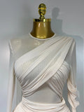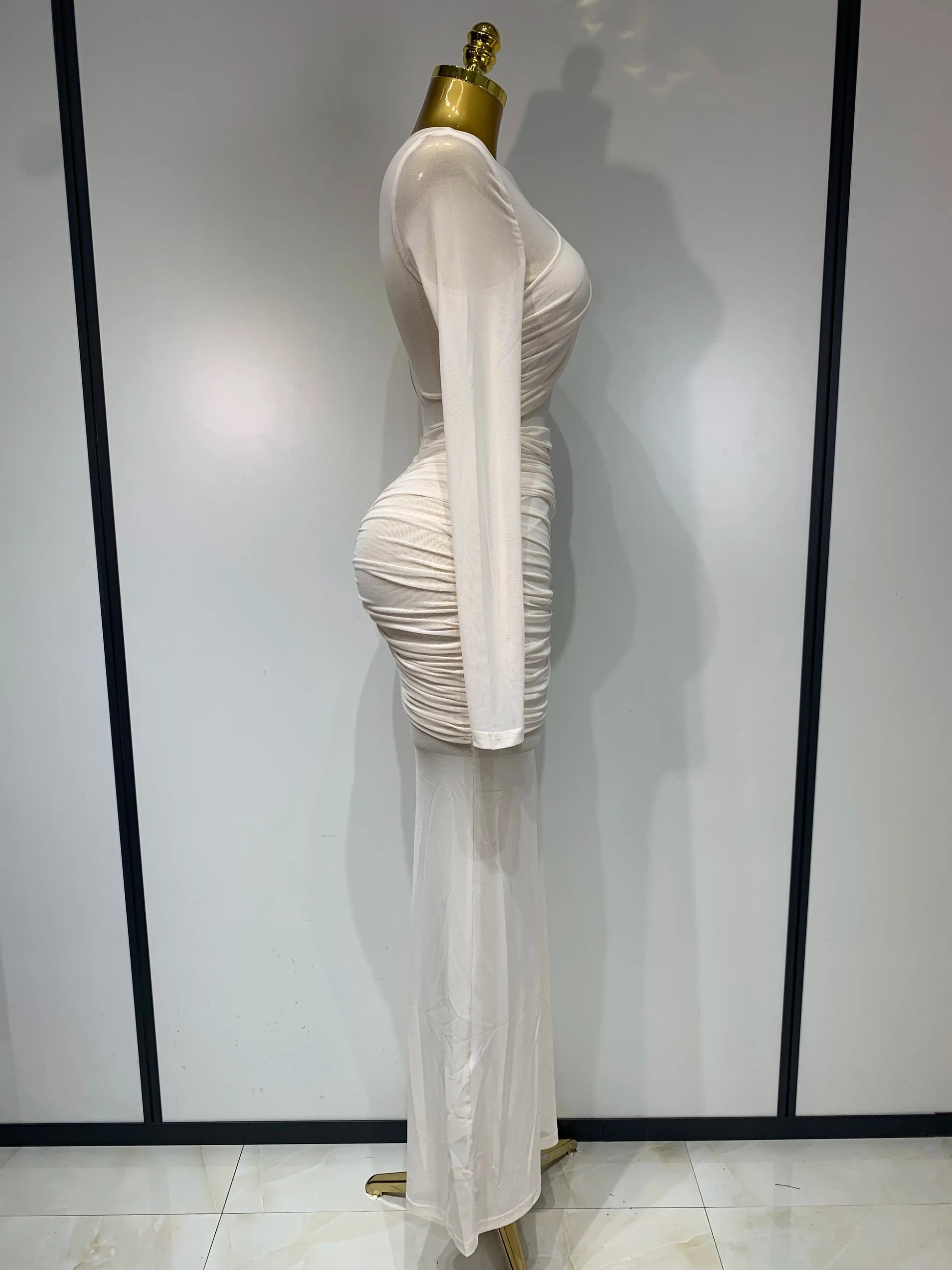 Elegant Mesh Fold Long Sleeve Bodycon Dress Women Evening Party Club Sexy Perspective Fashion Luxury Birthday Dresses