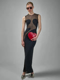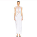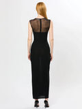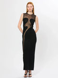 Elegant Mesh Patchwork Sleeveless Bodycon Party Club Evening Dress Sexy Bodycon Perspective Vestido 2025 Summer Clothing