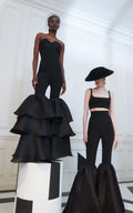 High Street Women Sexy Strapless Bodycon Ruffles Wide Leg Jumpsuit Bandage Celebrate Evening Party Jumpsuit