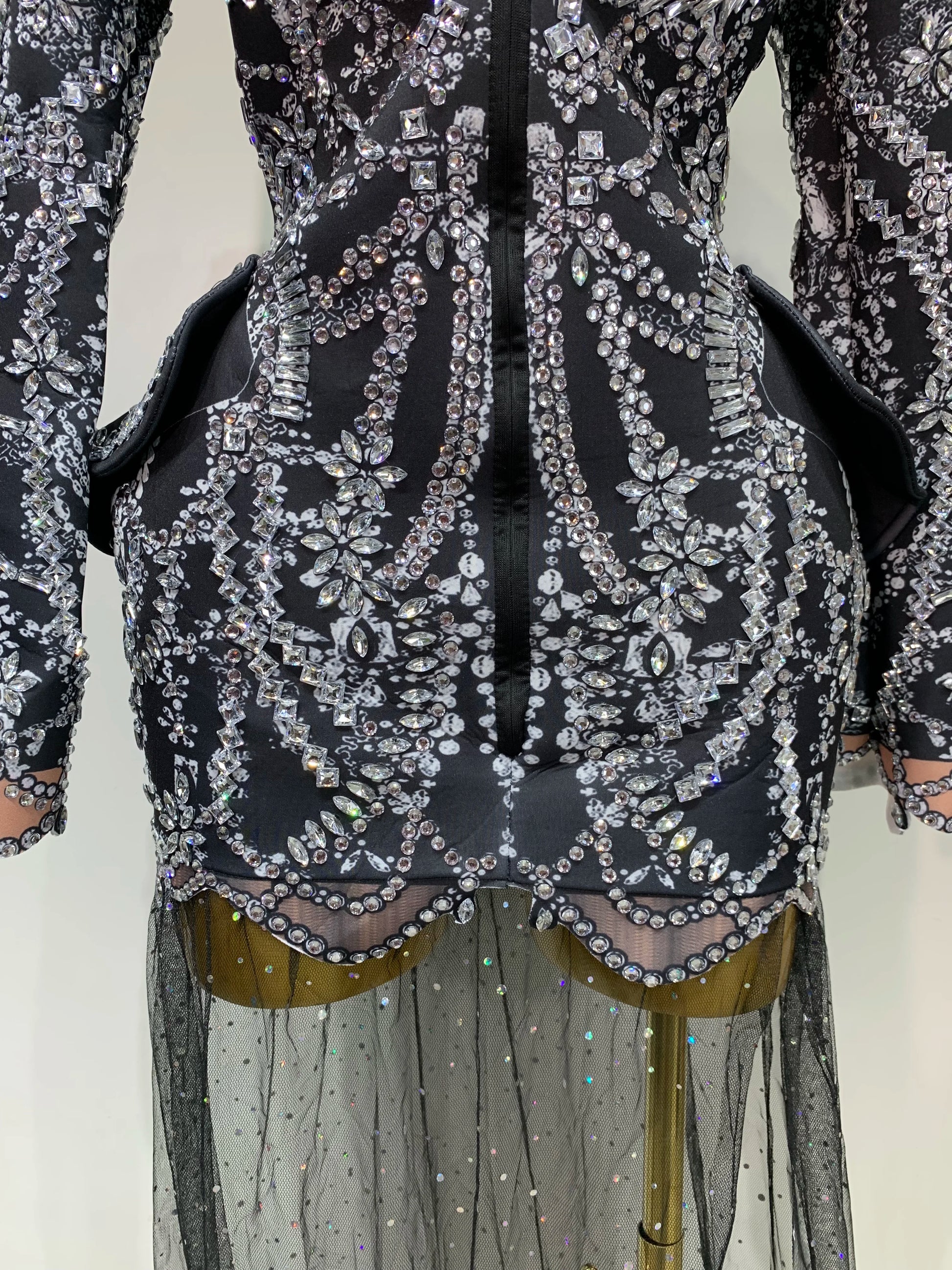 Luxury Nightclub Evening Birthday Dresses Stage Perform Outfit Sparkly Rhinestone Women's Elegant Party Sexy Dress