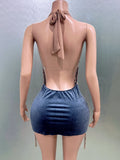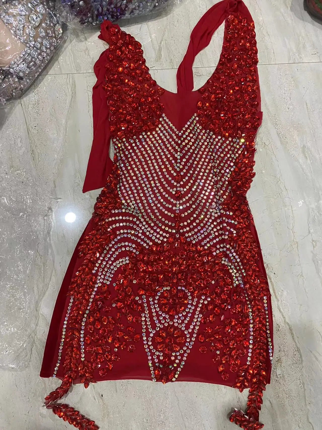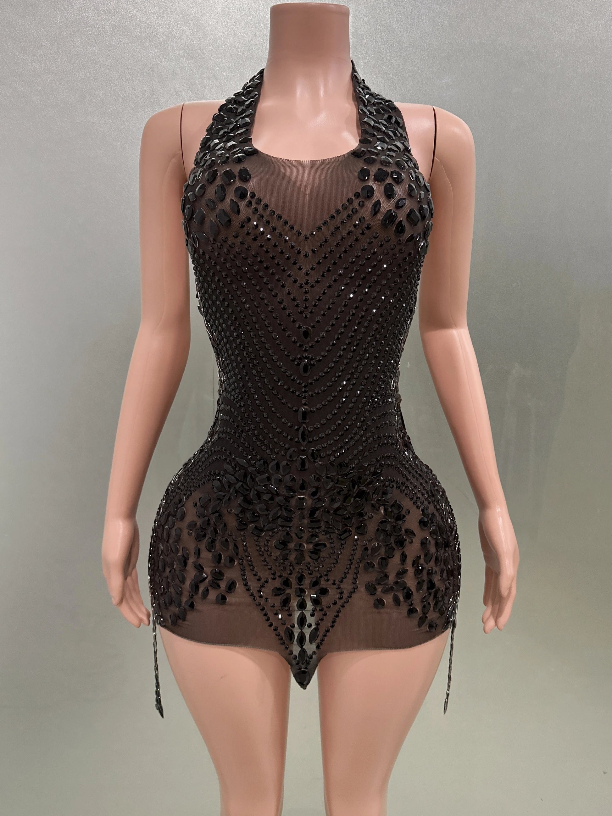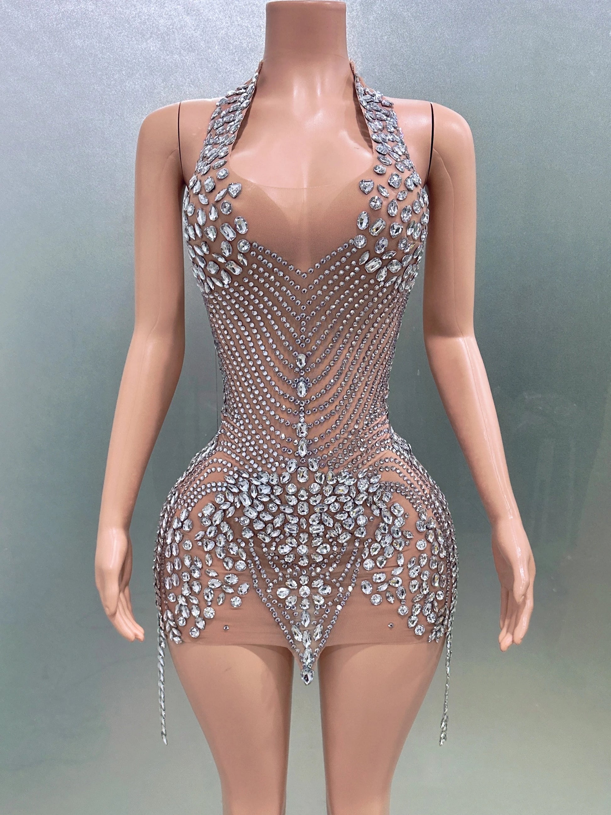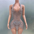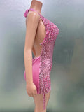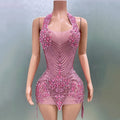 Women Sexy Halter Crystal Bodycon Mini Dress Celebrate Nightclub Party Performance Birthday Photo Shoot Dress