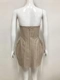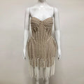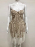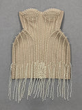 Ladies Luxury Bead Tassels Strapless Backless Design Celebrity Party Club Khaki Sleeveless Sexy Mini Bandage Dress 2025 New