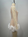 Luxury Exquisite Beading White Flowers Sexy See Through Mini Evening Dress Woman Birthday Party Dress Performances Costume