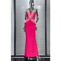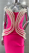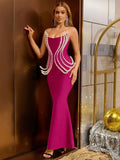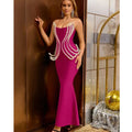 Luxury Pearl Geometric Design Strapless Package Hips Bandage Long Dress Elegant Woman Party Dress Celebrity Party Vestido