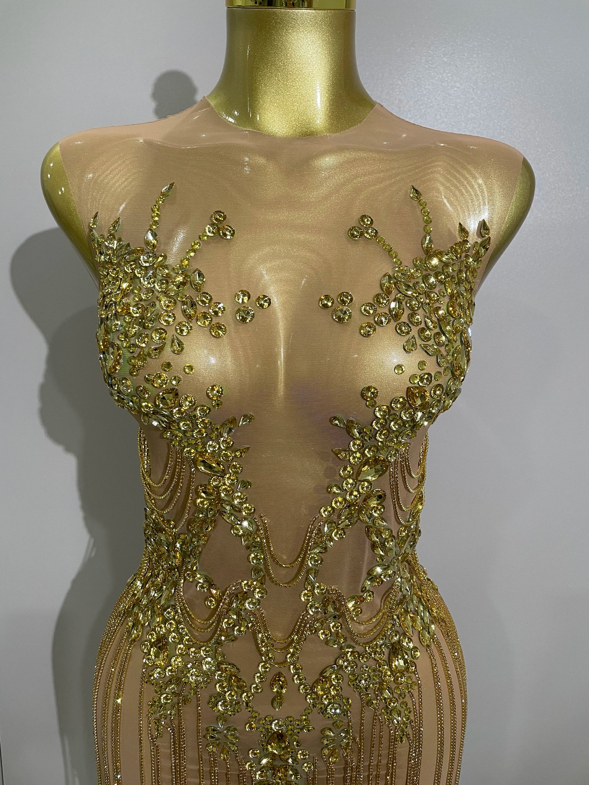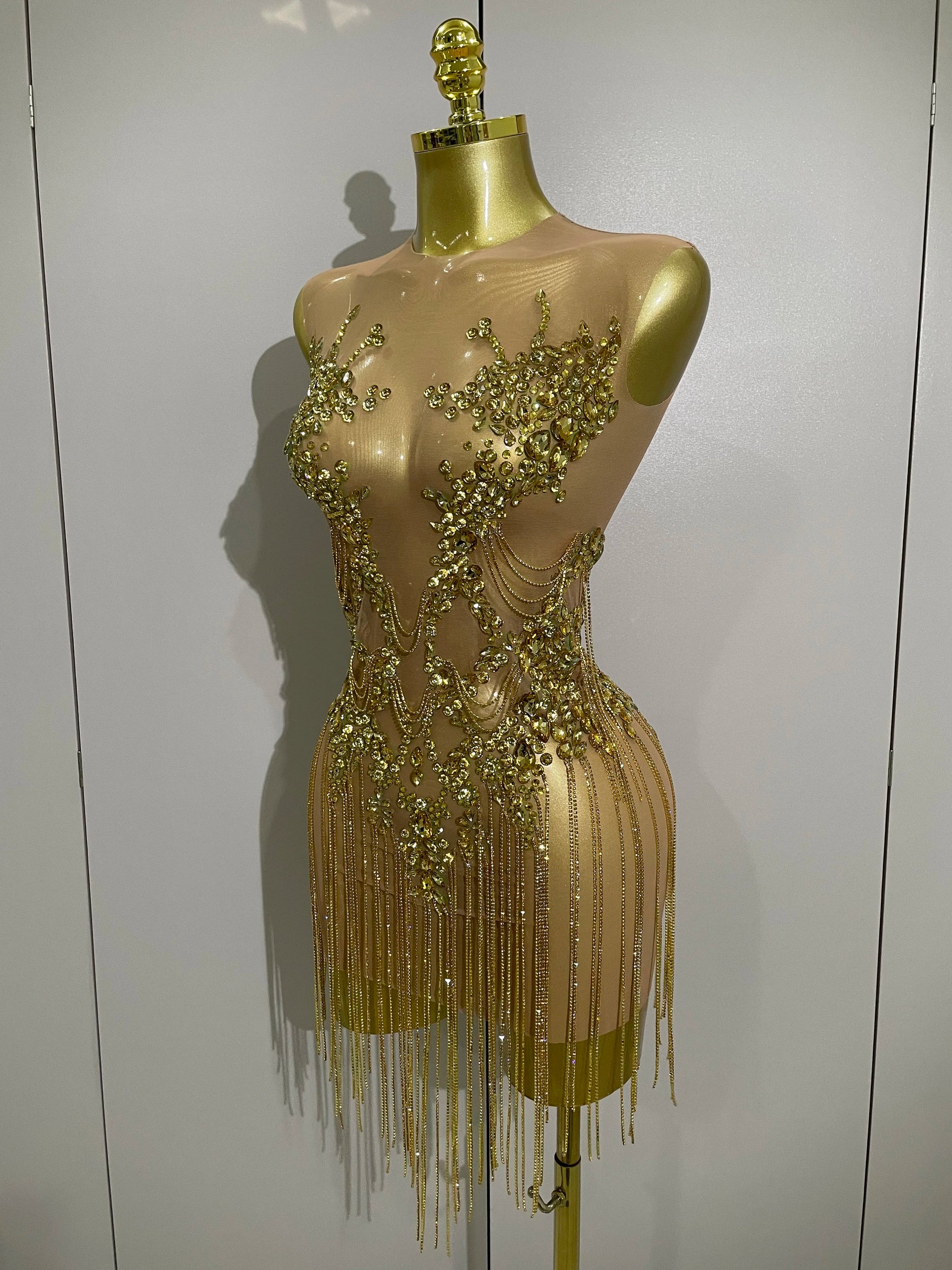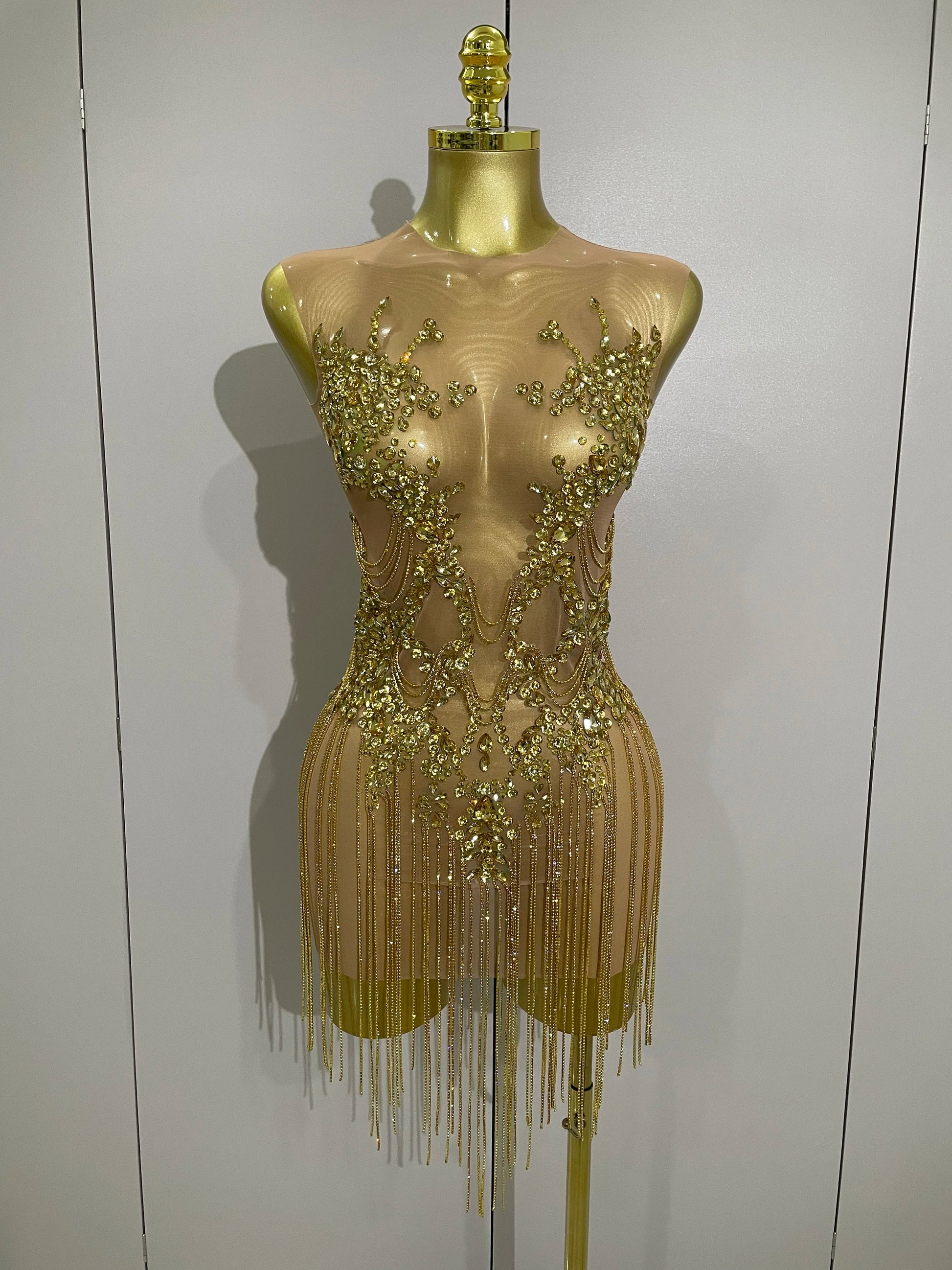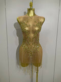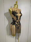 Luxury Sparkly Rhinestones Chain Sleeveless Mini Dress 2025 Women Sexy Performance Dance Nightclub Outfit Birthday Party Dress
